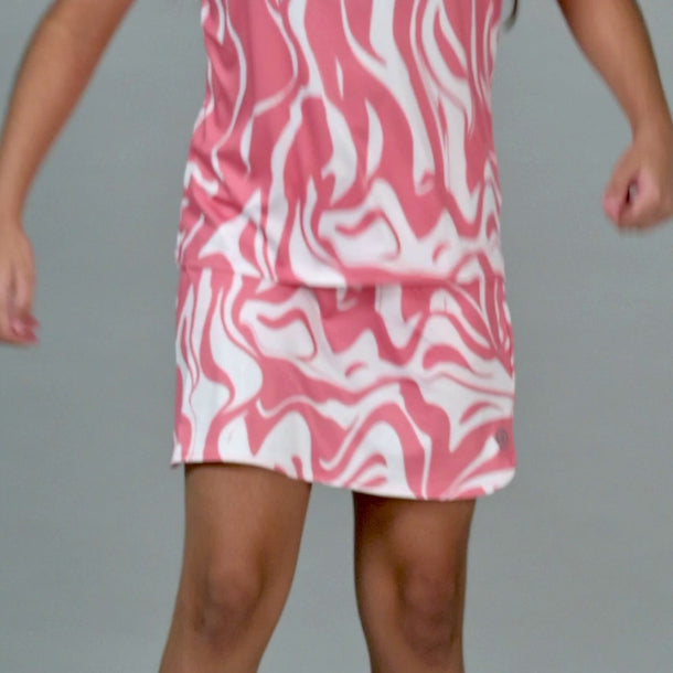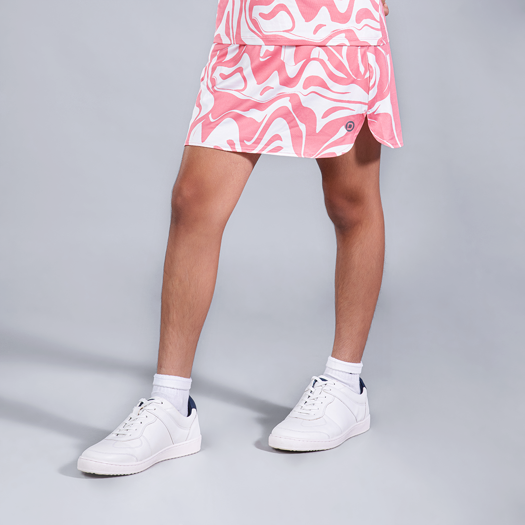 The wave-inspired, pink-white print adds a cool vibe and beach-fresh feel even when tucked indoors or in a city-based activity. Wear it with a white, pink or matching wavy pink tee.