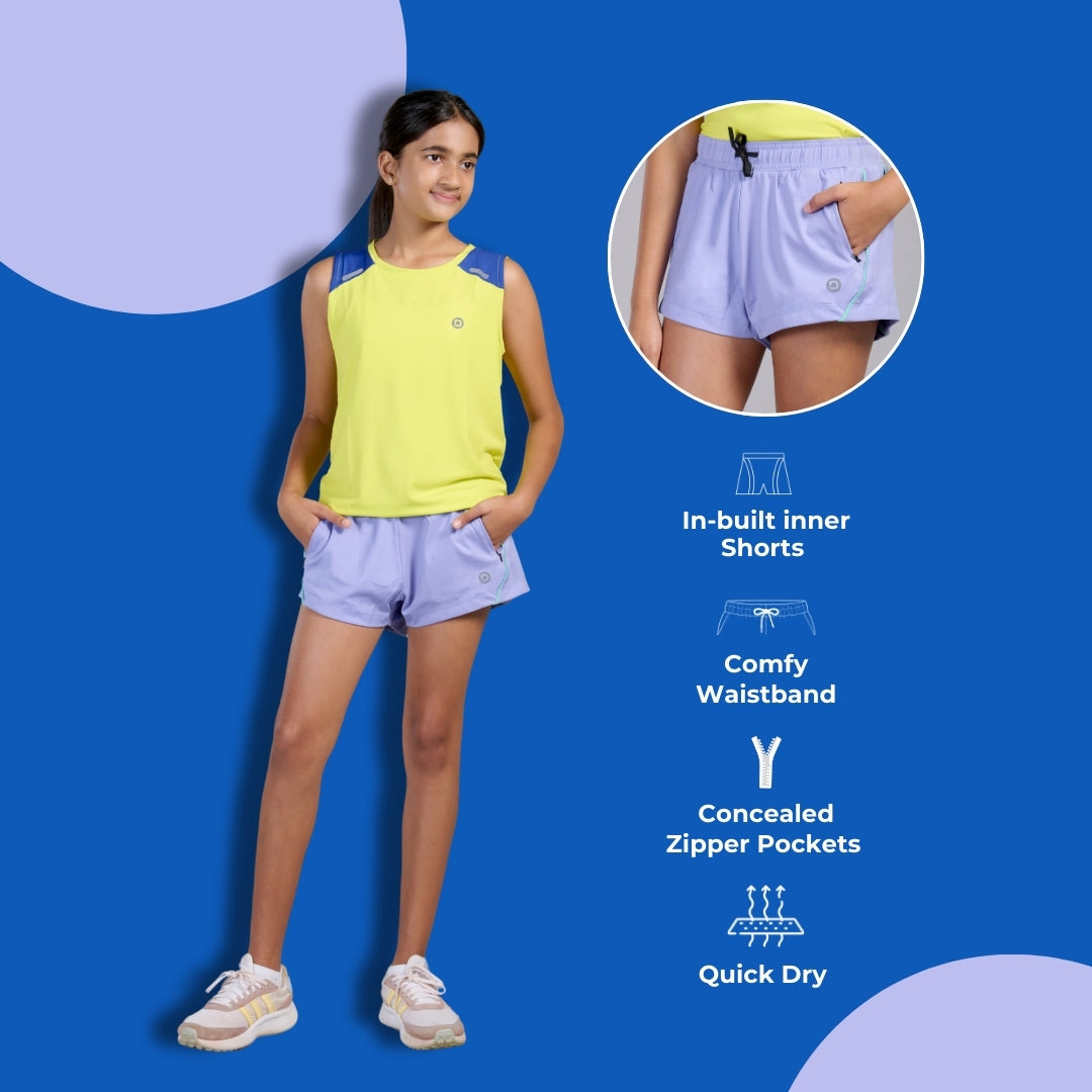 Dripmov’s Activewear Girls’ Shorts have raised thigh lines for a sporty look and yet are comforting enough to curl up on a couch and read, sketch, or laze away. The pipings hold any extra wear-and-tear, zippered pockets ensure secure storage, and soft drawcord waistband for comfort. This pair is cut well for longer wears with contrasting underpants.