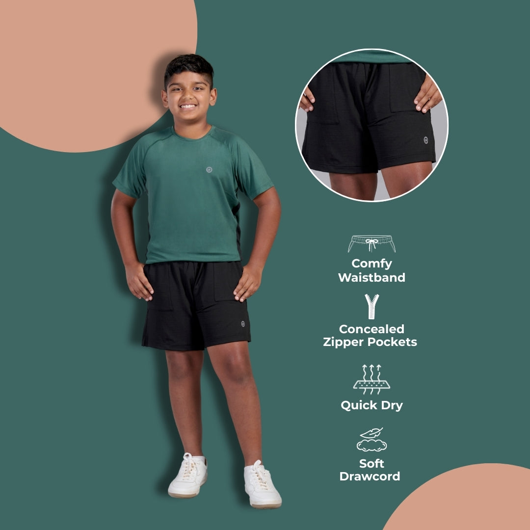 Dripmov’s Activewear Boy’s Shorts feature convenient zipper pockets to keep essentials secure. The soft drawcord waistband ensures a snug, comfortable fit. With side slits for enhanced mobility, he can run, jump, and explore unrestricted. Made from moisture-wicking fabric, these shorts keep him dry through any activity.