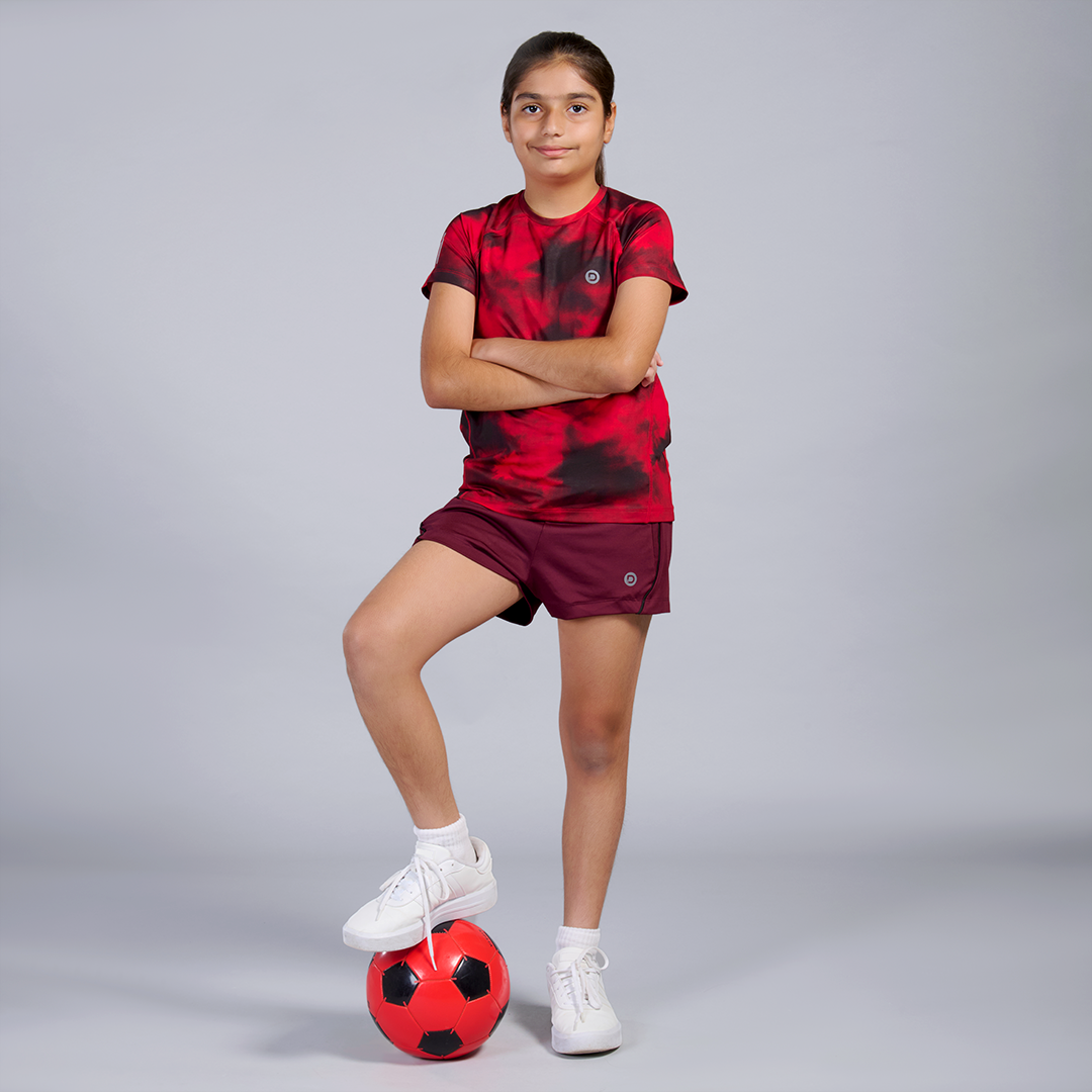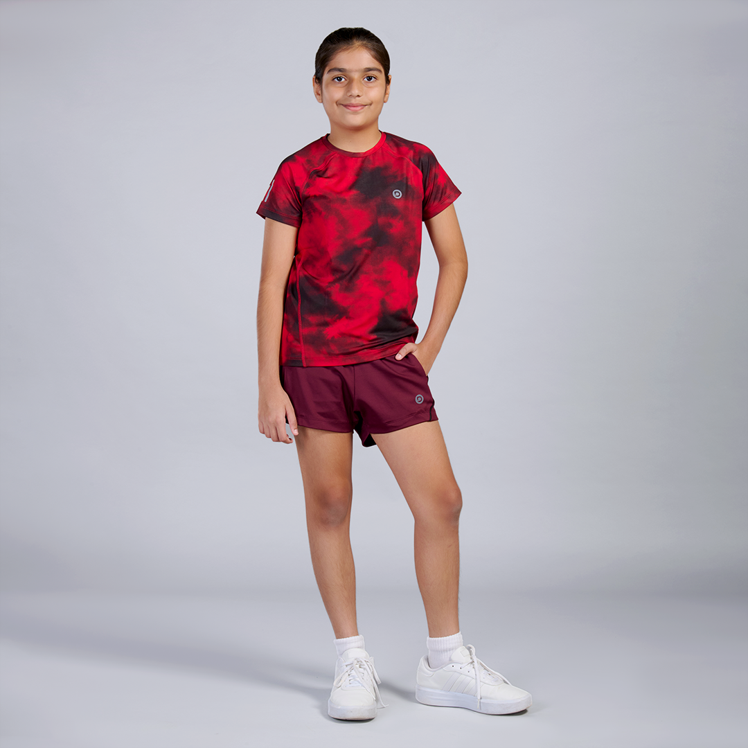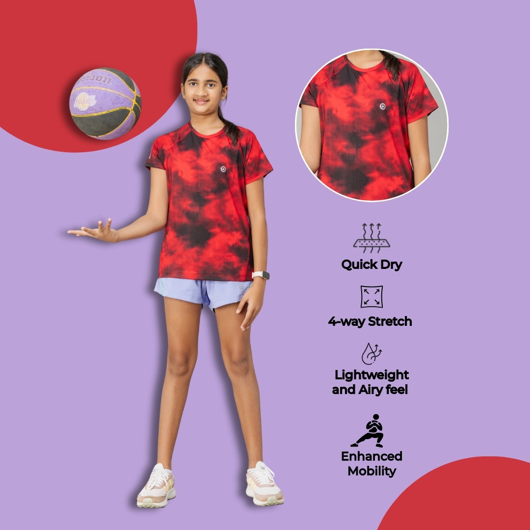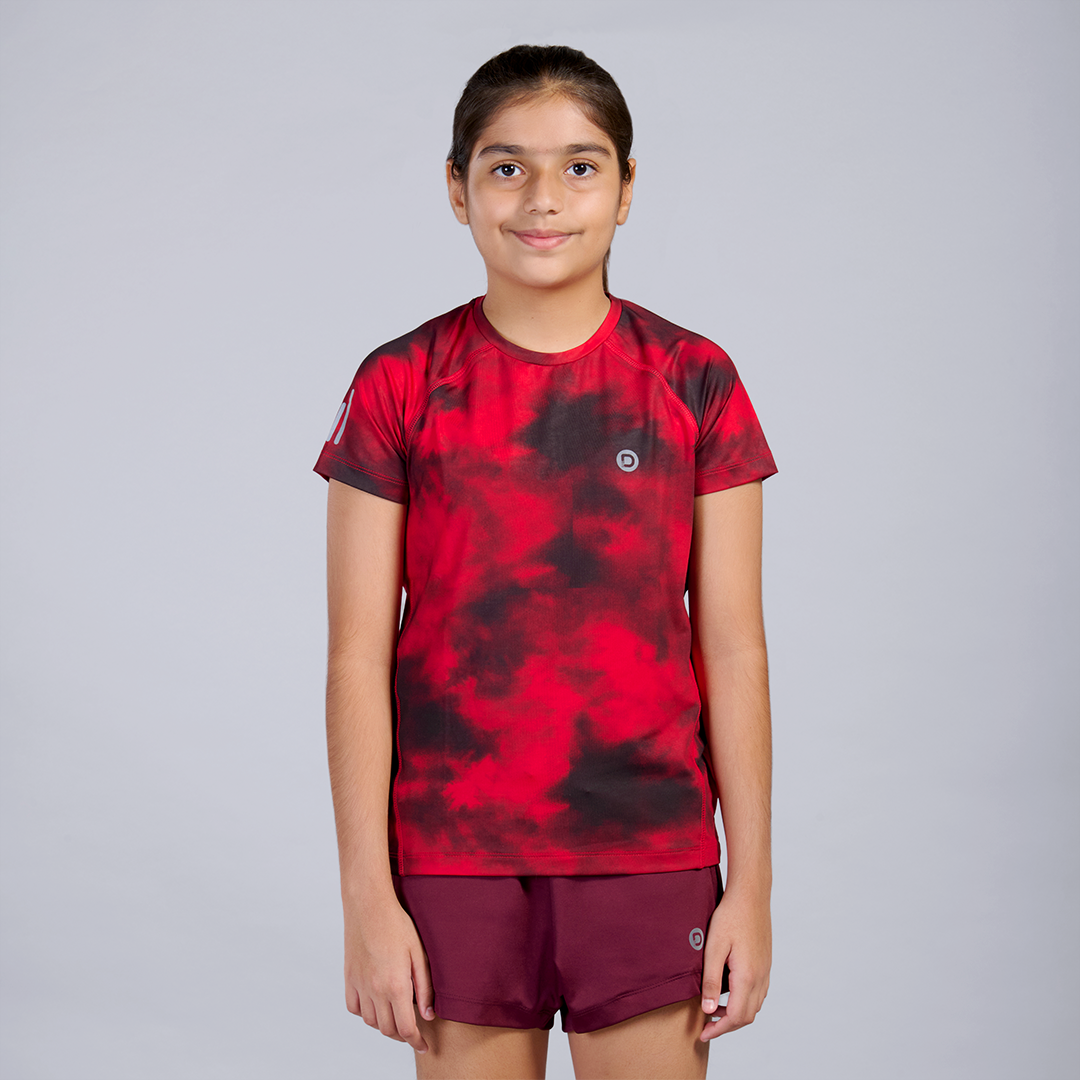 Marble-Dye Red T-shirt for Girls from Dripmov is a stylish and unique choice for active young girls. Made from premium, stretchable material, this t-shirt offers both comfort and flexibility for all-day wear. The marble-dye pattern in red adds a modern and eye-catching element to the outfit, making it stand out from ordinary t-shirts. Whether worn for sports or casual wear, this t-shirt is designed to keep up with their active lifestyle. It's easy to care for and can withstand regular machine washes, ensuring long-lasting color and quality. Dripmov Girls Activewear T-shirt – the perfect blend of fashion and function!