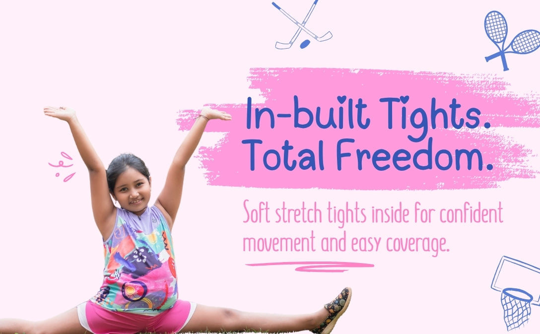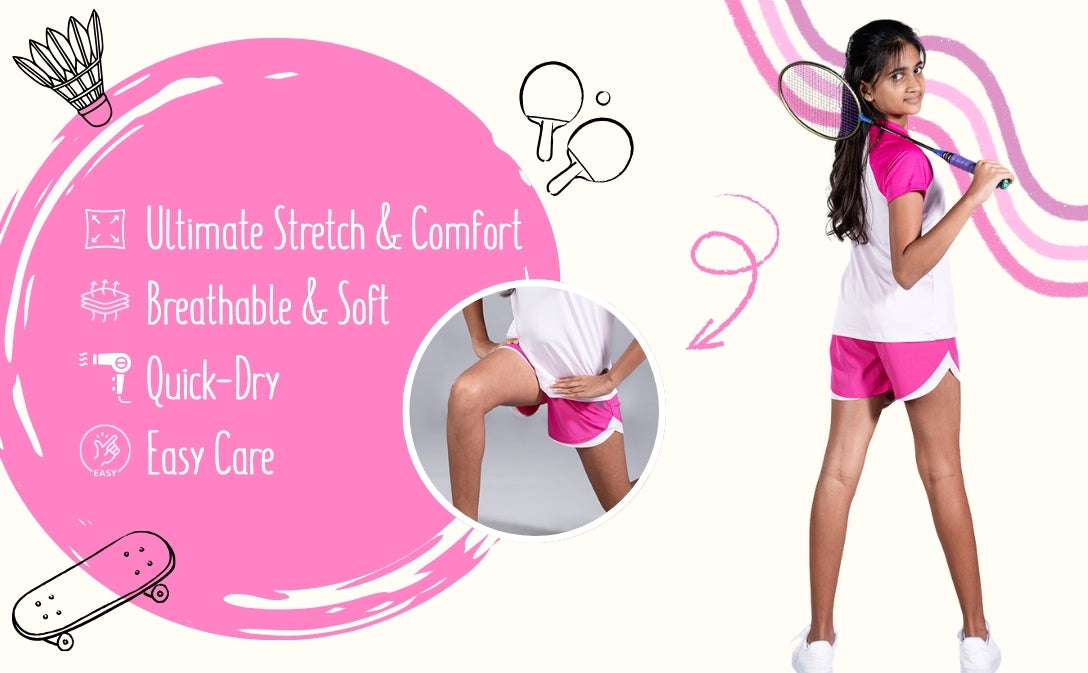 Dripmov’s Activewear Girls’ Shorts have raised thigh lines for a sporty look and yet are comforting enough to curl up on a couch and read, sketch, or laze away. The pipings hold any extra wear-and-tear, zippered pockets ensure secure storage, and soft drawcord waistband for comfort. This pair is cut well for longer wears with contrasting underpants.