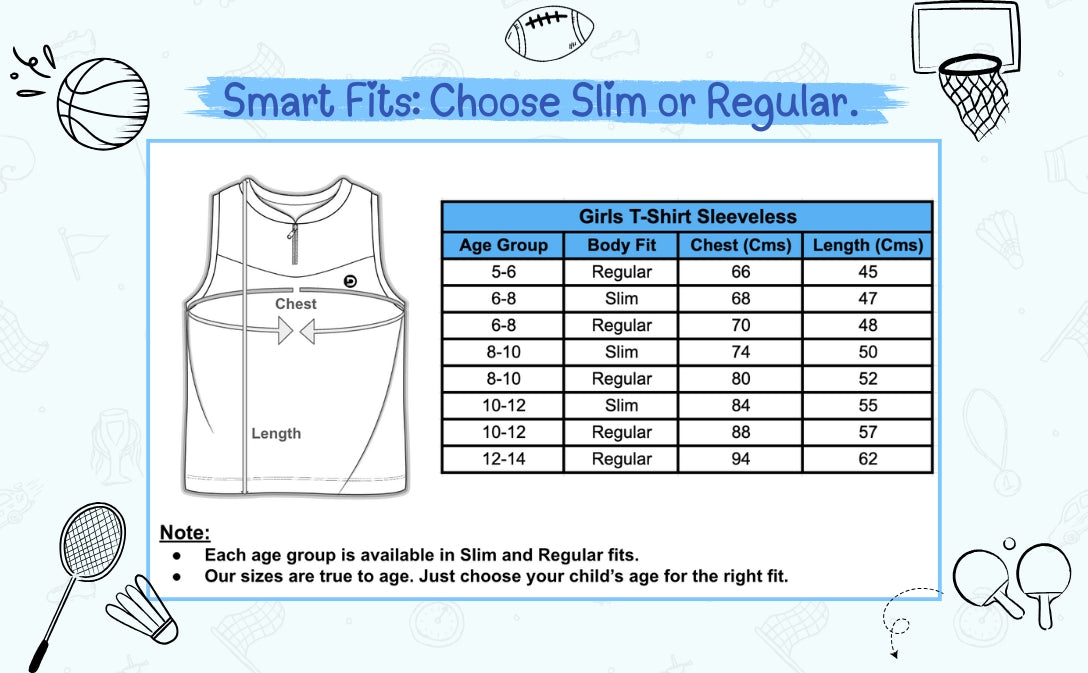 SizeChart - Girls T-Shirts