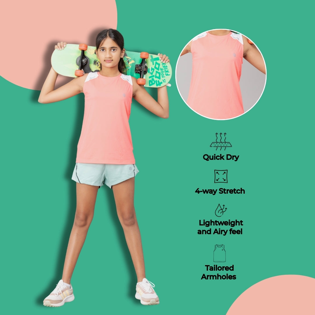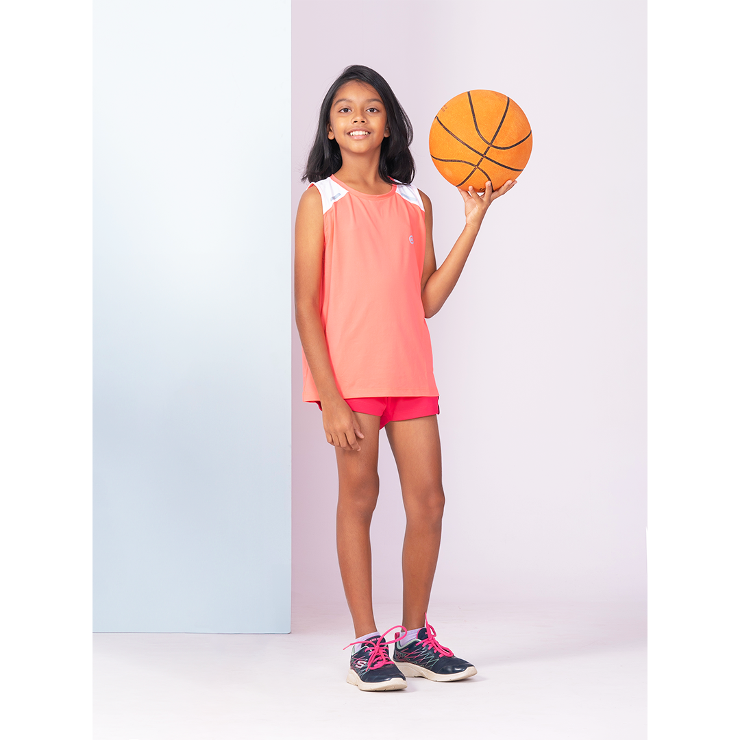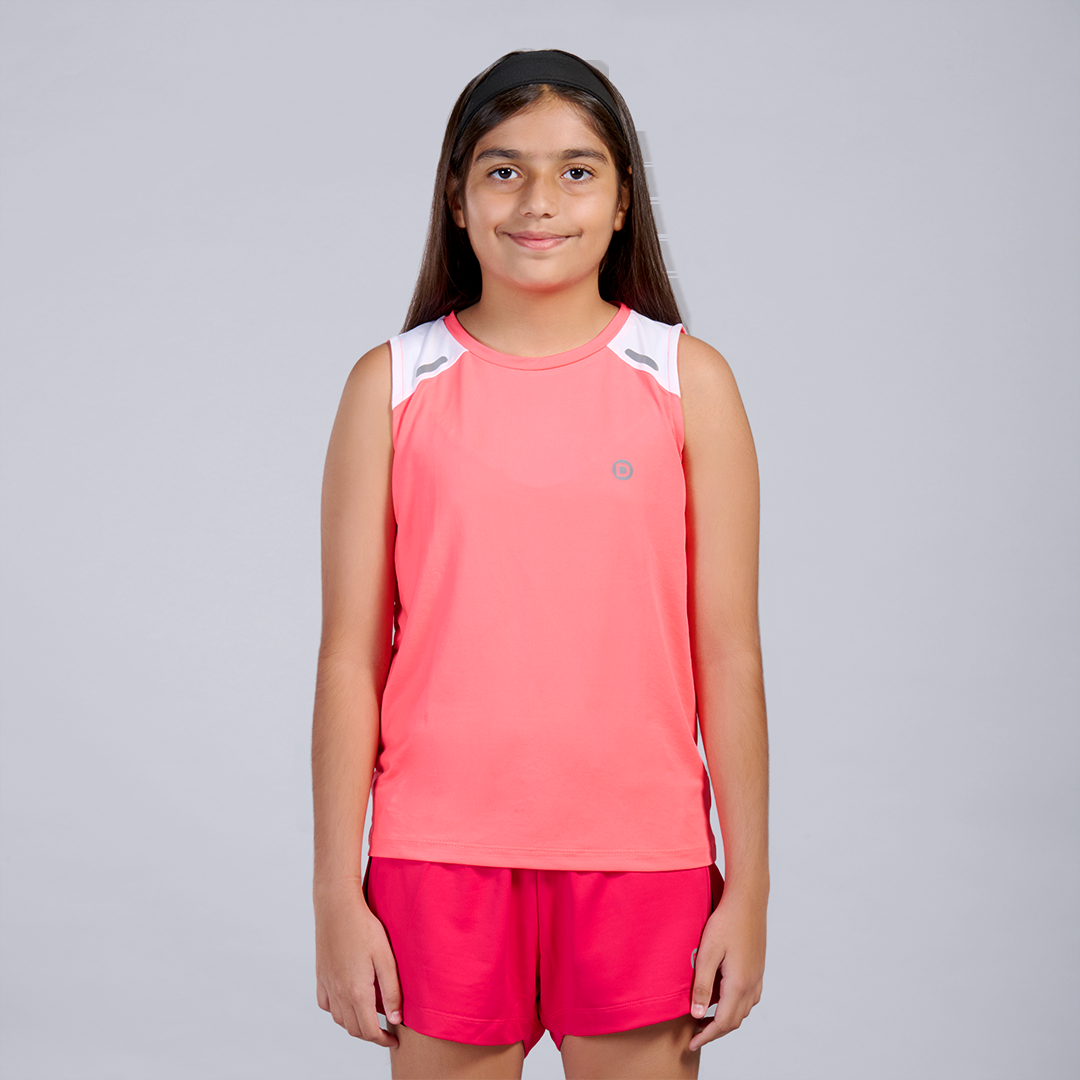 That fruit hue with a touch fo white, which gives a soft yet bright edge to your kid’s sporty look. A vest style that is super comfortable with almost all types of lowers.