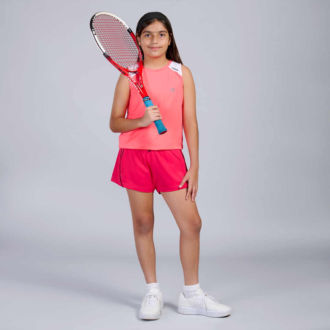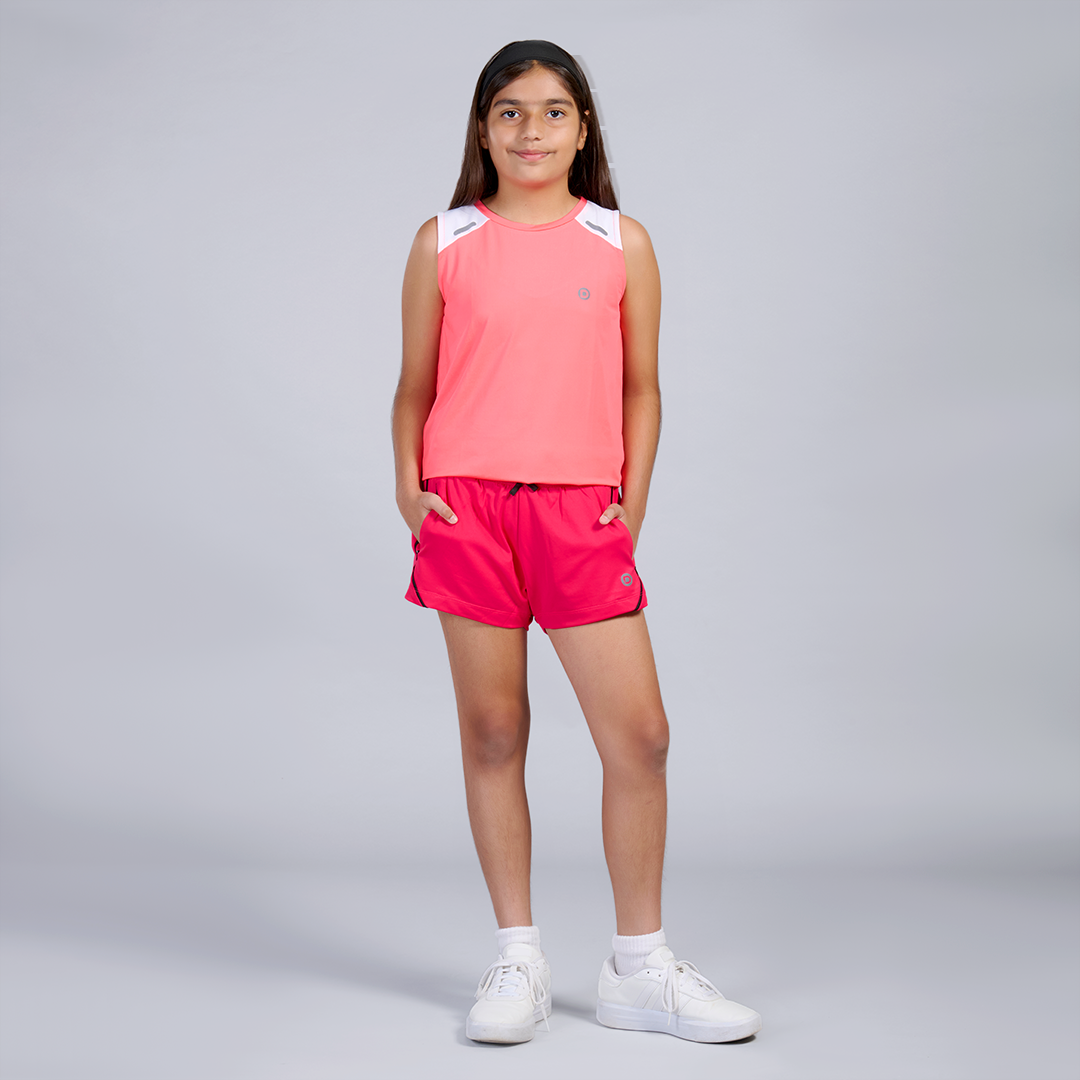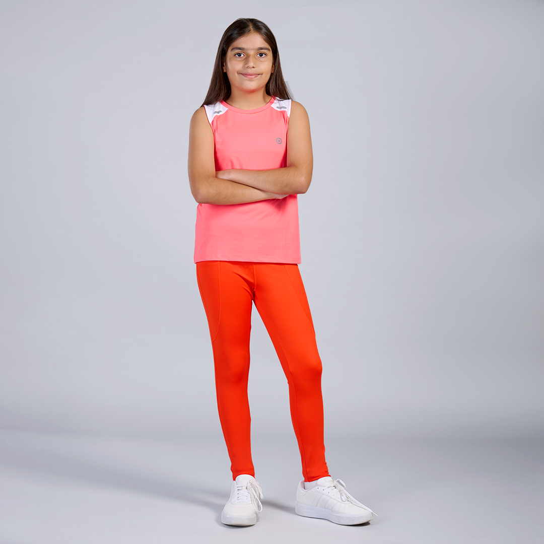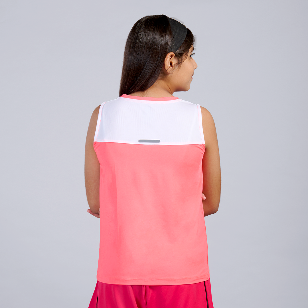 That fruit hue with a touch fo white, which gives a soft yet bright edge to your kid’s sporty look. A vest style that is super comfortable with almost all types of lowers.