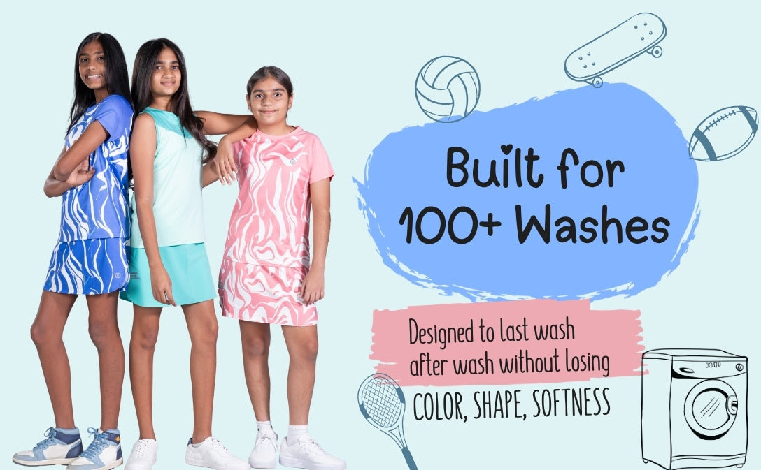 Dripmov’s Activewear Girls’ T-Shirt (Sleeveless) has raglan sleeves that fit and bend just right. They slide down comfortably, but don’t slip and stay on well. The armholes are cut a little more deeply to accommodate any intense movement. And the neckline of this vest-like style stretches perfectly but lives on longer.